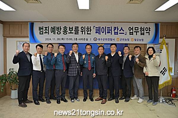 대구군위경찰서(서장 임상우)는 지난 28일 경찰서 2층 사라온실에서 경찰서장, 각 과장, 군위·팔공농협 조합장, 농협 관계자 등 10여 명이 참석한 가운데 보이스피싱 등 범죄예방 홍보를 위한 ‘범죄예방 페이퍼 캅스’ 간담회를 개최했다.