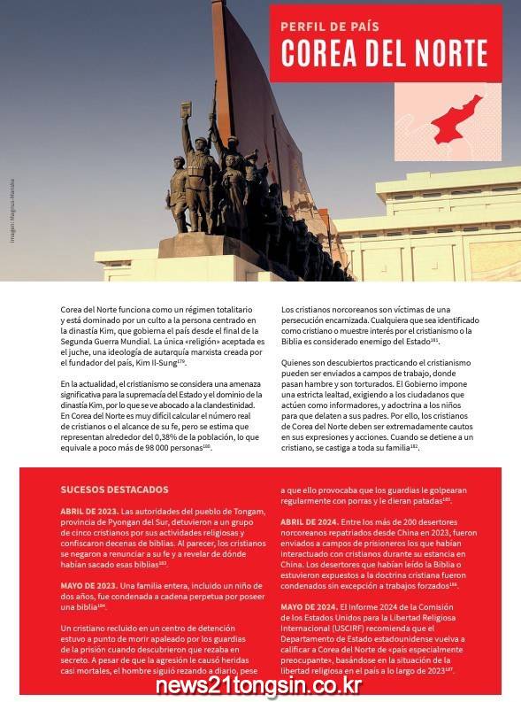 종교 박해에 대한 경각심을 불러일으키기 위해 올해 처음 발간된 이 보고서는 북한을 포함한 18개 주요 국가의 종교 박해 상황을 다루고 있다.