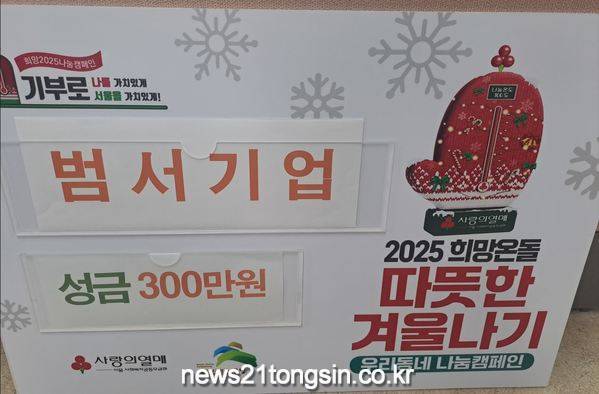 은평구(구청장 김미경) 불광1동은 지난 25일 범서기업으로부터 ‘따뜻한 겨울나기’ 캠페인 성금 3백만 원을 기부받았다고 밝혔다.