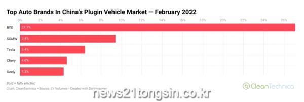 한편, BYD는 올해 들어 미국과 유럽연합(EU)의 관세 장벽에도 성장하며 미국 전기차 업체 테슬라를 제치고 신에너지차 분야에서 세계 1위를 기록하고 있다. 2009년 첫 전기차 e6를 내놓은 지 13년 만인 2022년 테슬라를 꺾고 세계 1위 전기차 기업이 됐다.