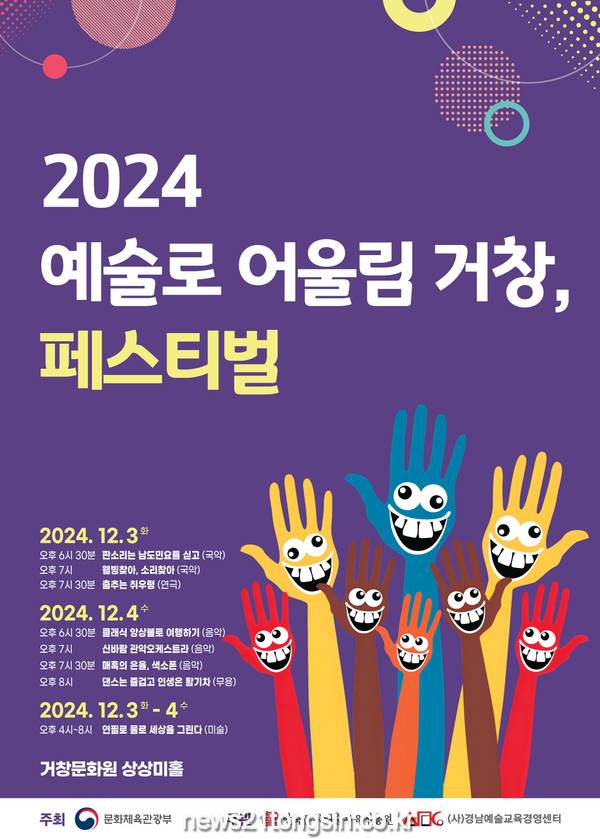 문화체육관광부가 주최하고 한국예술교육진흥원과 경남예술교육경영센터가 주관하는 <2014 예술로 어울림 거창, 페스티벌>이 3일~4일, 상살미 홀에서 화려하게 막을 올린다고 거창군은 2일 밝혔다.