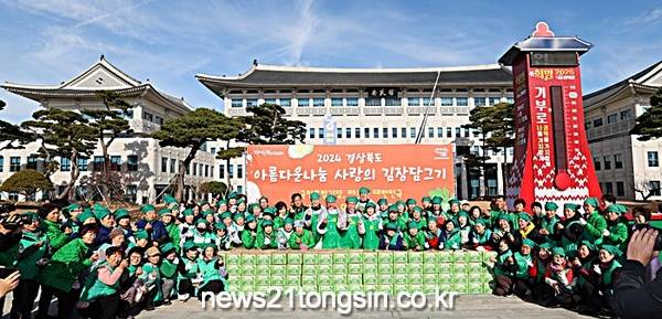 경상북도 새마을부녀회는 3일 경북도청 안민관 전정에서 이철우 경북도지사를 비롯해 박성만 경상북도의회 의장, 임종식 경상북도교육감, 경상북도새마을부녀회원, 봉사단체(초록회원) 200여 명이 함께한 가운데 2024년 ‘사랑의 김장담그기’ 행사를 개최했다.