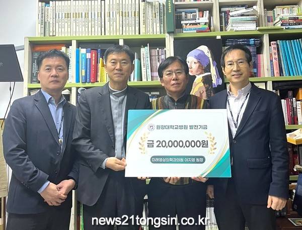 원광대학교병원(병원장 서일영)은 지난 3일 익산 미래영상의학과 이지영 원장이 병원 발전과 경쟁력 향상을 위해 병원 발전기금 2,000만 원을 기부했다고 밝혔다.