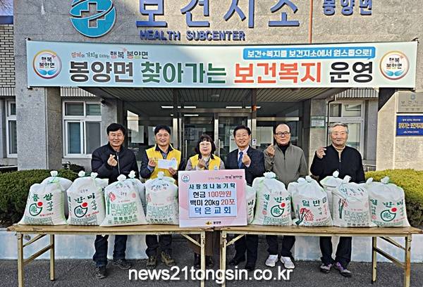 의성군 봉양면(면장 김영훈)은 지난 5일 덕은교회(담임목사 조상래)에서 관내 위기가구를 위하여 백미 20kg 20포(94만원 상당) 및 현금 100만원을 봉양면지역사회보장협의체(위원장 김영훈, 황순복)로 3년 연속 기탁하였다고 밝혔다.