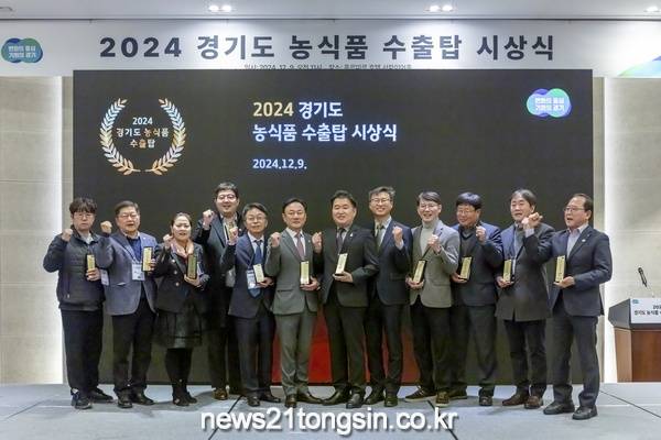 경기도는 9일 화성 푸르미르호텔에서 ‘2024년 경기도 농식품 수출탑 시상식’을 열어 도내 농식품 수출 우수 기업들의 성과를 축하하고, 글로벌시장 도약을 위한 의지를 다졌다.