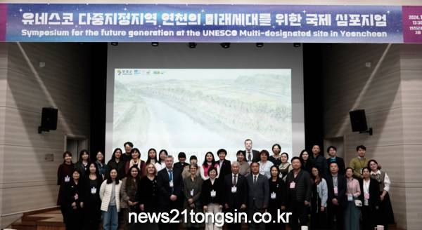 연천군(군수 김덕현)은 지난 8일 연천군종합복지관 3층 대강당에서 ‘유네스코 다중지정지역 연천의 미래세대를 위한 국제심포지엄’을 성황리에 개최했다고 밝혔다. 이번 심포지엄은 연천 임진강 유네스코 생물권보전지역 지정 5주년과 한탄강 유네스코 세계지질공원 재지정을 기념하여 ‘미래세대’를 주제로 마련되었다. 이를 위해 연천군과 경기도, 이클레이한국사무소, 유네스코한국위원회, 유네스코MAB한국위원회, 동아시아-대양주 철새이동경로 파트너십(EAAFP) 사무국, 새와 생명의 터 등이 함께했다.