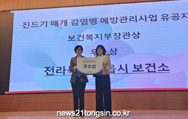 전북특별자치도 정읍시보건소가 질병관리청 주관으로 충남 오송에서 개최된 ‘2024년 진드기 매개 감염병 예방관리사업 평가대회’에서 우수기관으로 선정돼 보건복지부장관 표창을 수상했다고 9일 밝혔다.