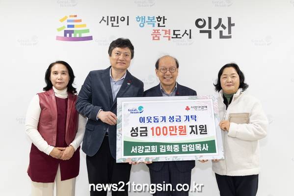 익산시는 익산서강교회 김혁중 담임목사가 성금 100만 원을 기탁했다고 10일 밝혔다.