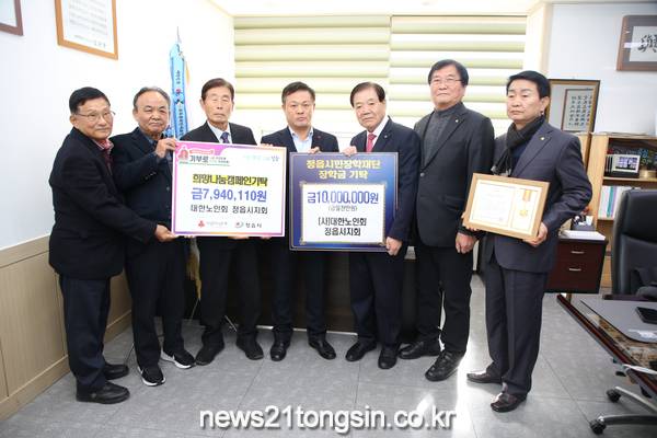 대한노인회 정읍시지회(지회장 이호춘)는 16일 사랑나눔 기부행사를 통해 1800여만원의 성금을 모아 이웃 돕기 성금과 정읍시민장학재단 장학금으로 기탁했다고 밝혔다.