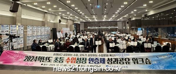 시교육청은 17일 JS웨딩컨벤션에서 인증 교사가 참여한 가운데 ‘성과공유 워크숍’을 개최했다. 이날 워크숍은 ‘어제보다 성장하는 수업, 모두가 성장하는 수업문화 확산!’을 주제로 ▲수업성장 인증제 인증서 수여 ▲수업 성장 Talk 콘서트▲내년도 운영 방향 논의 등 순으로 진행됐다.
