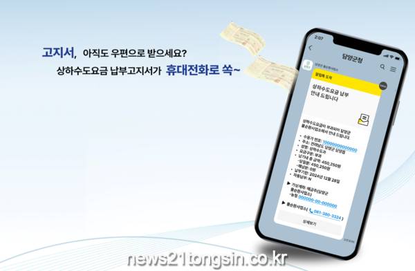담양군 물순환사업소는 정보통신기술(ICT) 기반 전자수도 요금 고지서 서비스인 ‘과세 알림톡 서비스’를 확대 운영한다.