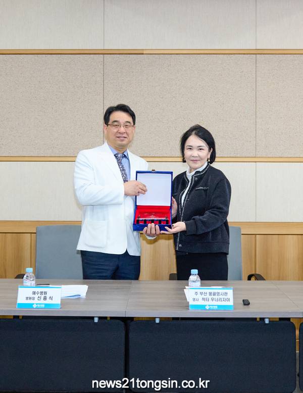 직터 우너르자야 주부산 몽골 영사가 최근 예수병원 신충식 병원장에게 감사장을 전달했다.