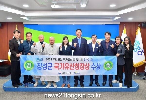 장성군이 국가유산청 주최 ‘2024년 우리고장 국가유산 활용 우수사업 시상식’에서 전통산사 부문 우수기관으로 선정돼 국가유산청장상을 수상했다.