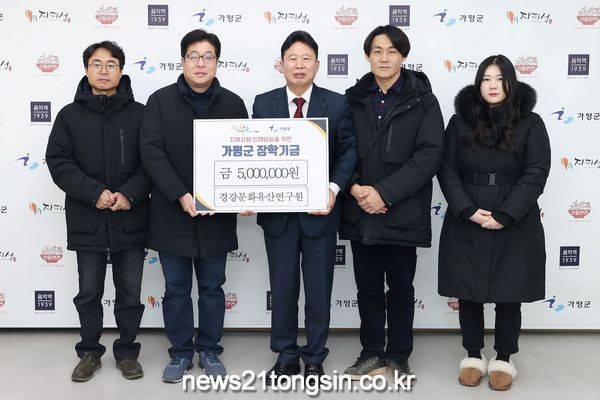 경강문화유산연구원은 19일 가평군청을 방문해 지역인재 육성을 위한 장학금 500만 원을 기부했다. 이날 경강문화유산연구원 차우근 대표는 “학생들이 학업에 전념하며 우수한 지역인재로 성장하는 데 작은 도움이 되길 바란다”며 장학금을 전달했다.