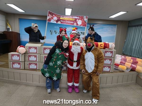 특히, 회원들은 저마다 산타와 루돌프 분장을 하고 아이들에게 캐럴 노래, 춤, 웃음을 선물 상자와 함께 전달했다.