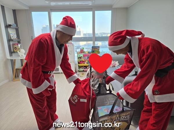 올 해 중앙동 ‘희망산타’는 중앙동 지역사회보장협의체 김부열 민간위원장, 조호성 부위원장이 산타복장을 하고 5명의 미취학 아이들 가구를 방문하여 크리스마스 선물을 전달했다.