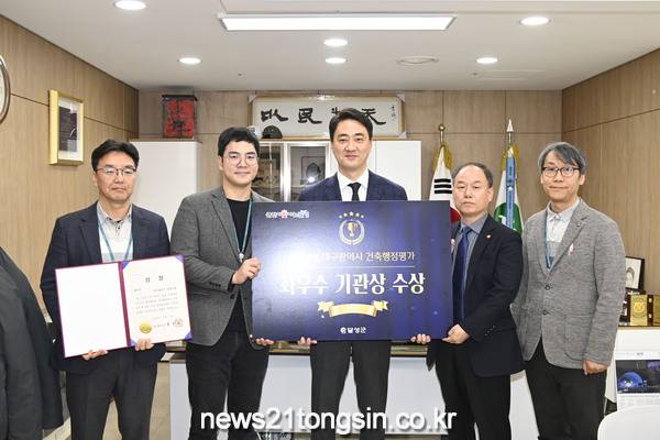 (뉴스21통신) 홍미희기자 = 2024년 실시한 ‘대구광역시 건축행정평가’에서 대구광역시 최우수 기관으로 선정되었다고 달성군(군수 최재훈)은 지난 30일 밝혔다.