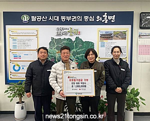 손숙희 의흥면장은 “기부에 동참해주신 박창수 대표님께 감사드리며, 소중한 성금 덕분에 많은 이웃들이 온정을 느낄 수 있게 되어 감사하다” 고 전했다.