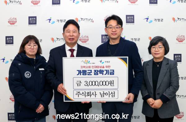 ㈜남이섬은 최근 가평군에 장학금 300만 원을 전달하며 지역인재 육성에 힘을 보탰다.