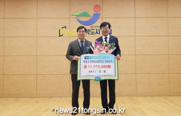 김성 장흥군수가 2일 새해 시무식이 열린 자리에서 (재)장흥군인재육성장학회에 1천만원의 장학금을 기탁했다고 밝혔다.