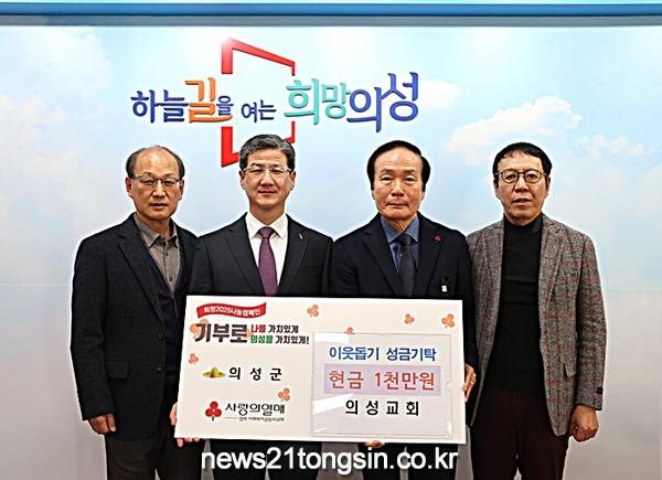 의성군(군수 김주수)은 지난 3일 의성교회에서 저소득 취약계층을 위한 이웃돕기 성금 1천만원을 기탁했다고 밝혔다.