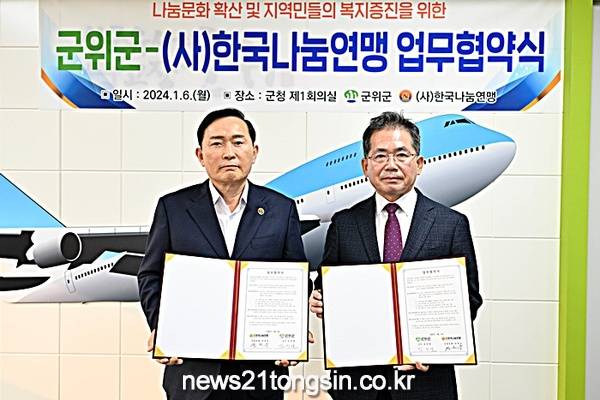 지난 6일 군위군과 (사)한국나눔연맹(총재 안천웅)이 나눔 문화 확산 및 지역민들의 복지증진을 위한 업무협약을 체결했다.