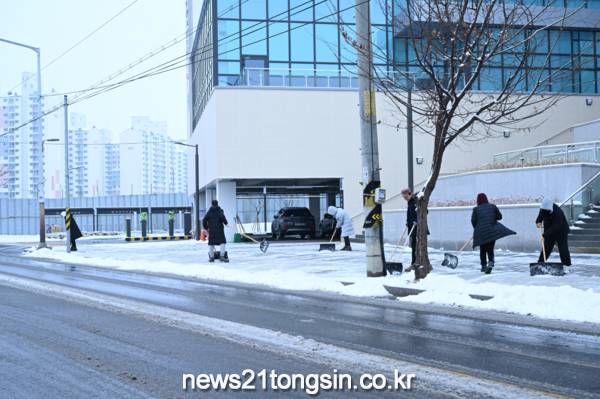 특히, 버스정류장과 횡단보도 등은 물론, 공원과 하천 변 등의 공공시설을 집중적으로 제설하여, 공공시설을 이용하는 시민들의 보행 불편 해소와 빙판길 낙상 방지 등 안전사고 예방을 위하여 휴일을 반납한 채 작업에 구슬땀을 흘렸다.