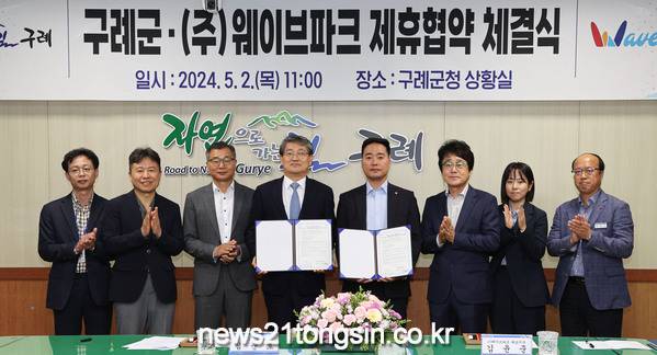 구례군은 5월 2일 군청 상황실에서 ㈜웨이브파크와 상호협력을 위한 제휴 협약을 체결했다.