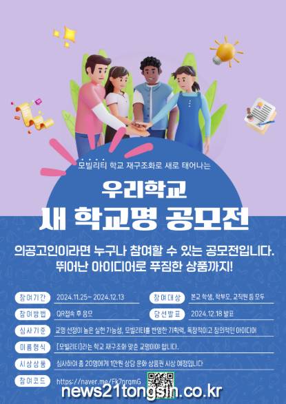 이번 공모전은 ‘미래교육 마스터 플랜 설계기획단’이 주관하여 모빌리티분야 글로벌 인재양성을 위한 교육공동체의 학교명 변경 수요를 반영하기 위해 학생, 학부모, 교직원, 동문회 등이 참여하게 된다.