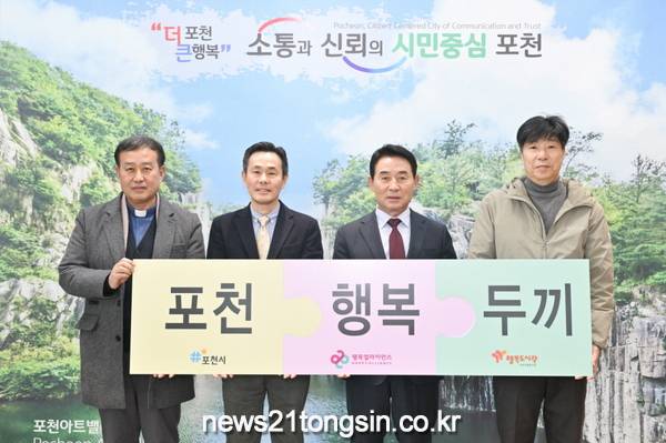 포천시(시장 백영현)는 지난 7일 행복얼라이언스(사무국 행복나래(주)) 및 행복도시락 사회적협동조합과 ‘포천시 행복두끼 프로젝트 협력을 위한 업무 협약’을 체결했다.