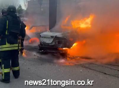 건물이 불타고, 운행 중이던 버스는 시커멓게 그을렸다.