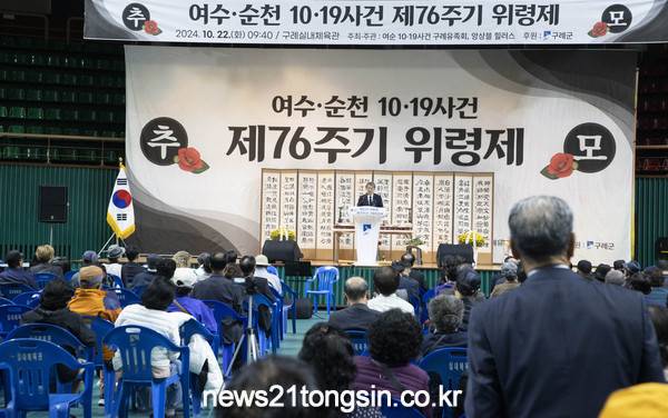 오전 9시 40분 추모 공연을 시작으로 위령제와 추념식이 이어졌고, 오후 2시에는 구례군 문화예술회관에서 음악극 '지리산 밑의 사람들'이 공연됐다.이날 행사에는 이규종 여순 10․19사건 구례유족회장을 비롯한 여순사건 희생자의 유가족과 김순호 구례군수, 장길선 구례군의회 의장, 양광희 구례경찰서장, 신제성 구례교육지원청 교육장 등 250여 명이 참석해 희생자를 추모하고, 역사적 비극에 대한 군민들의 이해와 공감을 이끌어 냈다.이규종 유족회장은 “고령의 유족들이 돌아가시기 전에 희생자 결정을 받을 수 있도록 국가와 사회 각계가 힘을 모아 줄 것”을 당부했다.김순호 군수는 “무고하게 희생된 분들의 영령이 편히 쉬기를 바라며, 유가족들을 깊이 위로한다”고 말했다.
