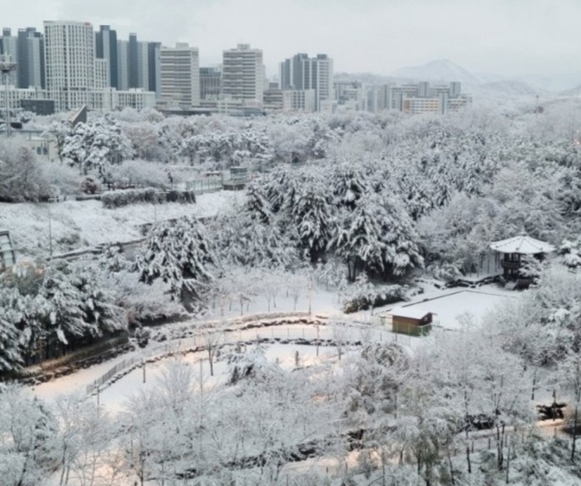 6일 밤부터 9일까지 사흘 간 계속 눈이 내리면서 전북 무주 설천봉 29.3㎝, 순창 복흥 23.1㎝ 등 적설량을 기록했다. 전북을 중심으로 일 최고 적설량이 7일 12㎝, 8일 15㎝, 9일 오전 10시까지 10㎝ 등 많은 눈이 내렸다. 충남권과 전라권, 제주산지를 중심으로 9일 밤까지 강한 눈이 내리고, 10일에는 충청·전라 서해안과 도서지역을 중심으로 눈이 약간 더 내리겠다.