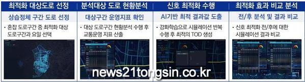 인공지능 기반 신호 최적화는 최소 200회 이상의 강화학습을 통해 가장 효과적인 교통 신호 시간(TOD, Time of Day)을 도출하고 이를 정체 구간에 적용했다. 그 결과, 통행속도는 평균 4.4% 향상되고, 지체시간은 평균 8.0% 단축됐으며, 이를 통해 연간 약 98.9억 원의 경제적 편익이 발생한 것으로 분석됐다.