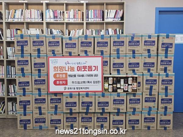 대전 중구 문화1동(동장 장성임)은 새해를 맞이하여 두드림교회(담임목사 김성은)에서 명절선물세트 150개(750만 원 상당)를 기탁했다고 12일 밝혔다.