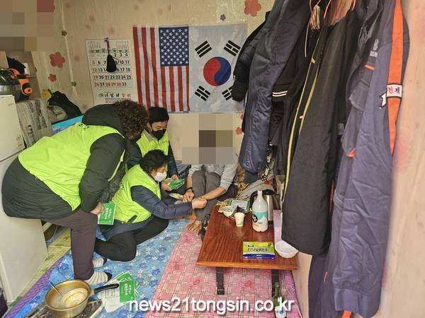 ▲ 사진=동두천시생연1동 지역사회보장협의체(위원장 윤광회)는 10일 한파 취약 가구를 방문하여 방한용품을 전달하고 복지서비스를 제공했다고 밝혔다.