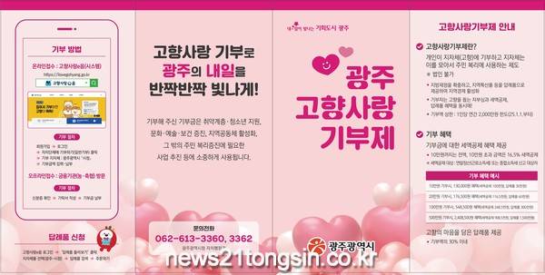 광주광역시(시장 강기정)는 지난해 고향사랑기부금 3억6000만원을 모금했다. 이는 전년도 1억1200만원보다 321% 증가한 것으로, 전국 17개 시·도 가운데 대전에 이어 두 번째로 높은 증가율이다.
