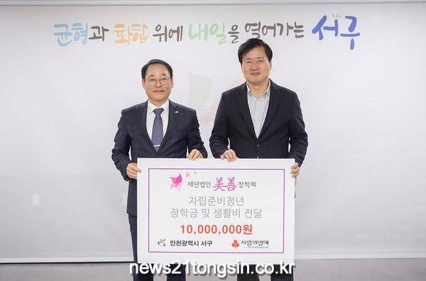 인천 서구(구청장 강범석)는 1월 13일, 미선장학회(이사장 박선원)로부터 장학금 1,000만원을 전달받았다.