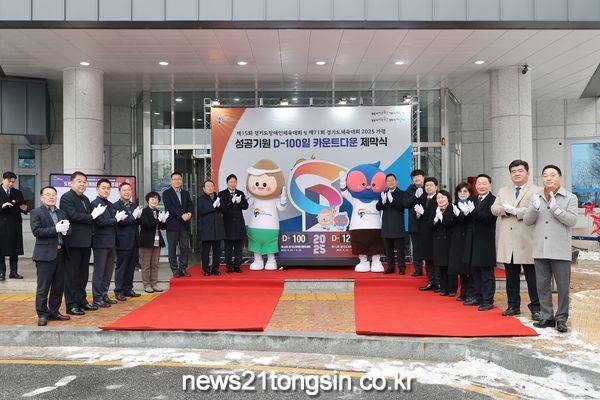 가평군(군수 서태원)은 14일 군청 현관에서 ‘제15회 경기도장애인체육대회’ 및 ‘제71회 경기도체육대회’ 개최 전 100일을 기념하는 디데이 카운트다운 보드판 제막식을 개최했다.