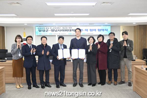 (뉴스21통신) 홍미희기자 = 지난 15일 지역사회 발전에 이바지할 인적자원 육성과 평생교육 활성화 방안을 모색하고 상호 협력하기 위하여 영남사이버대학교(총장 임승환)와 관학 협력 협약을 체결했다고 달성군(군수 최재훈)은 밝혔다.