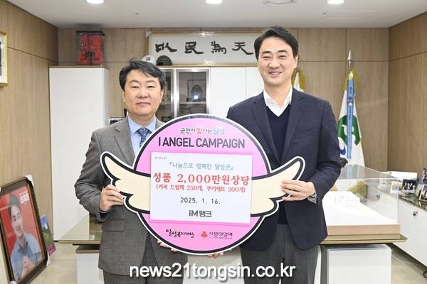 (뉴스21통신) 홍미희기자 = 16일 iM뱅크(상무 신용필)에서 저소득 취약계층에 전달해 달라며 커피 드립백과 쿠키세트 등 이웃 돕기 물품(2,000만 원 상당)을 기탁했다고 달성군(군수 최재훈)은 알렸다.