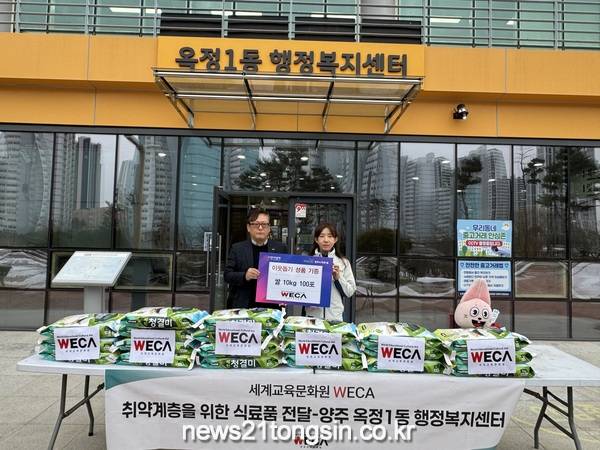 김동희 옥정1동장은 “나눔 문화 확산에 동참해 주신 세계교육문화원 WECA에 깊은 감사를 드린다”며 “이번 기부가 추운 겨울 관내 저소득층에게 따뜻한 위로와 희망이 되길 바란다”고 말했다.