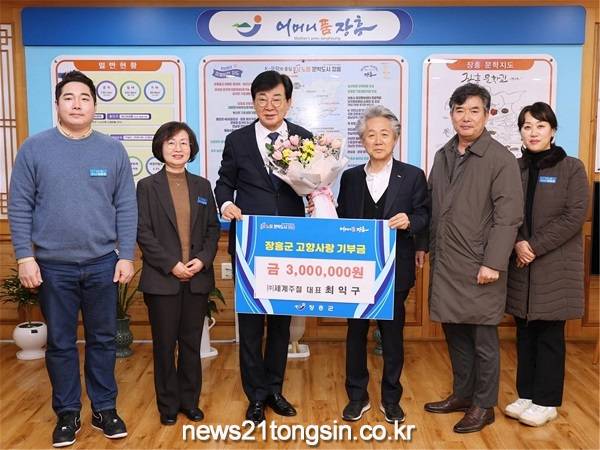 경상북도의 중견 기업인 ㈜세계 주철의 최익구 회장이 장흥군에 고향사랑기부금 300만 원을 기탁했다.
