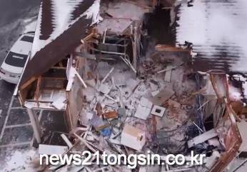 형체를 알아볼 수 없을 정도로 무너진 캐나다 동부 마운트 펄의 한 은행.