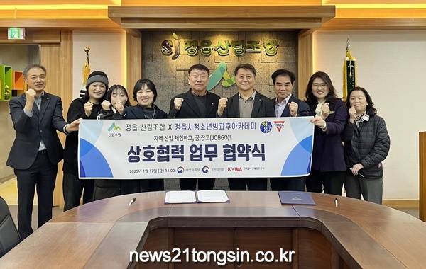 정읍시 청소년수련관(관장 최영락)과 정읍산림조합(조합장 최봉관)은 지난 17일 정읍산림조합 소희의실에서 청소년 방과후아카데미 이용 청소년들의 진로 교육과 실무 경험을 위한 업무협약을 체결했다고 20일 밝혔다.