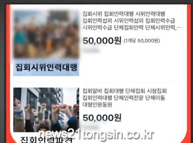 앞서 중고 거래 사이트에도, '집회에 참여할 용모단정한 여학생을 구한다'며 시급 만 30원을 내건 알바 구인 글이 올라왔다가 삭제되기도 했다.