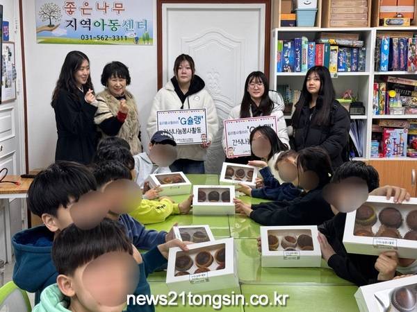 ▲ 사진=구리시구리시청소년재단(대표이사 강종일) 청소년문화의집은 지난 1월 18일(토)과 20일(월) 청소년 요리봉사동아리 ‘G슐랭’ 청소년들이 직접 만든 초코칩 머핀과 유자 머핀을 지역아동센터에 방문하여 전달하는 봉사활동을 진행했다.