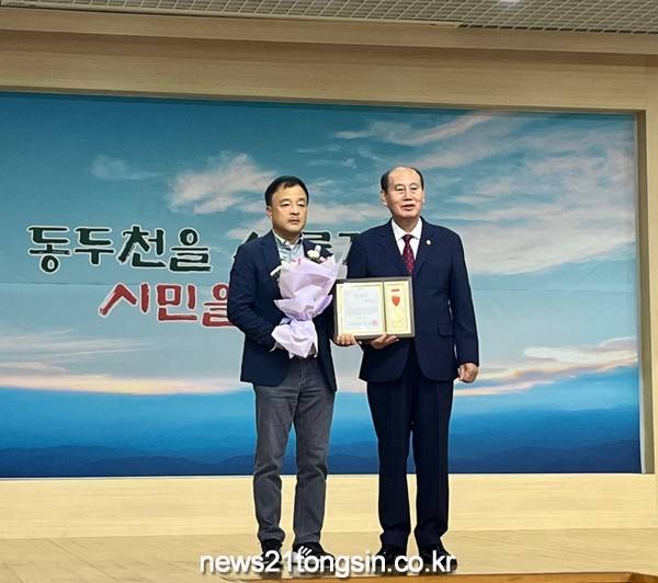 ▲ 사진=동두천시동두천시(시장 박형덕)는 최근, 시청 대회의실에서 열린 월례조회에서 헌혈 문화 확산과 혈액 수급 안정화에 크게 기여한 손현수씨에게 헌혈 유공 표창장을 수여했다.