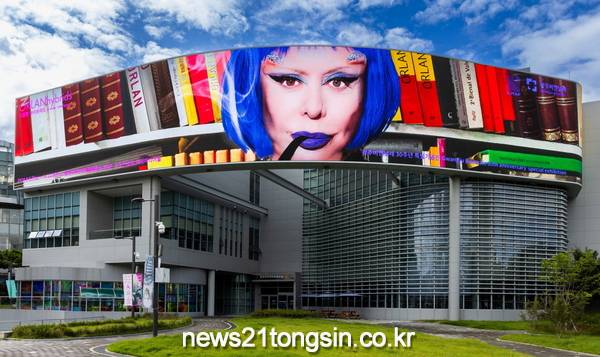 ▲ 자료사진_지맵 미디어파사드월에서 선보인 오를랑 하이브리드 전시신체 미술의 대가이자 프랑스 여성 거장인 오를랑의 개인전으로, 광주에서는 처음으로 선보였다. 기술이 가지는 무한한 장르의 다양성을 보여주는 오를랑의 작품세계를 통해 기술 매체를 활용한 예술적 확장과 공생의 목소리를 제시했다는 평가다.
