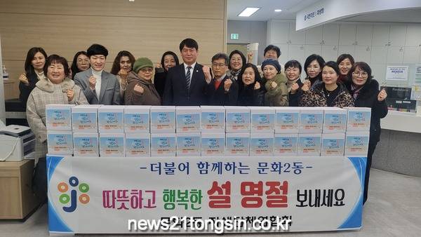 대전 중구 문화2동(동장 강민)은 22일 자생단체연합회(회장 조원규)와 후원자들이 설 명절을 맞아 소외계층을 위해 온누리상품권 200만 원을 기탁했다고 밝혔다.